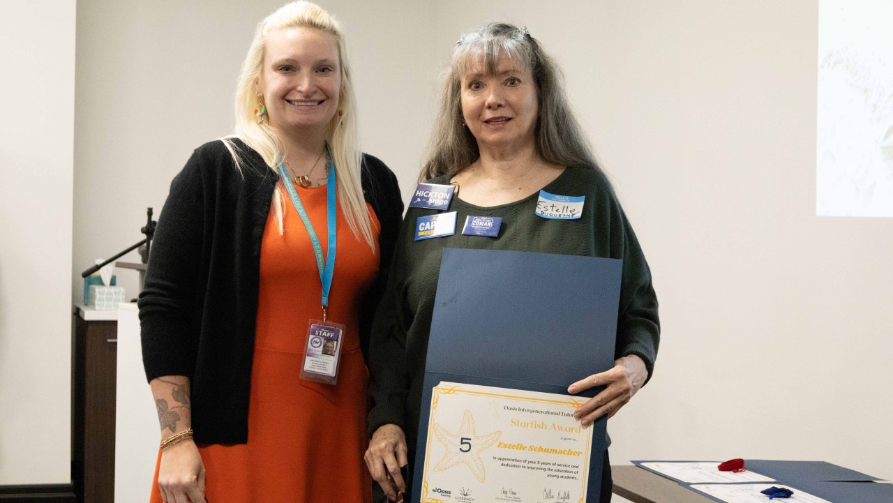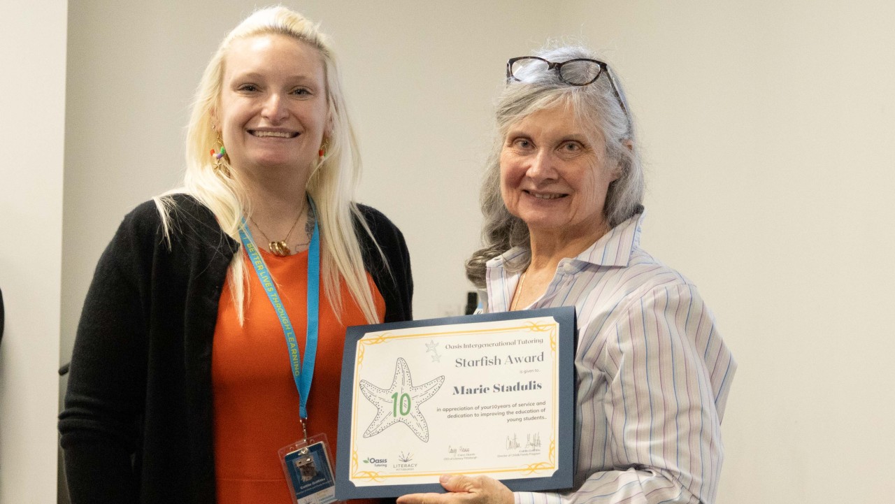 We recently celebrated our Oasis Intergenerational Tutoring volunteers at the annual Starfish Banquet. We were especially pleased to recognize the following tutors for their years of service: