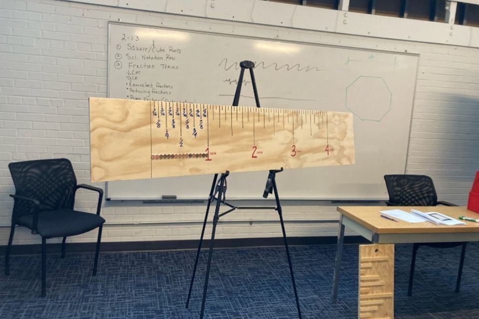 Building on that rich history, Pittsburgh Gateways developed the Energy Innovation Center, which “promotes energy-sector research and innovation while creating direct and deliberate bridges to job creation, entrepreneurship and urban economic revitalization.” Among their programs is Introduction to the Construction Trades. Students review many basics in the program, learn new aspects relevant to the trades, review key math used in the trades, and experience hands-on learning in this pre-apprenticeship program. Students who enroll in the program visit numerous trades throughout Western Pennsylvania, like carpenters, steam fitters, operator engineers, and the new airport, just to name a few. Literacy Pittsburgh was hired to teach the math portion of the program. Daily learning goals are listed on a whiteboard and help the student focus on which tasks are being reviewed for the day, including measurement. People in the trades use tape measures, speed squares, framing squares, and more to take accurate measurements. However, it all starts with knowing the inch and how the inch breaks down.
